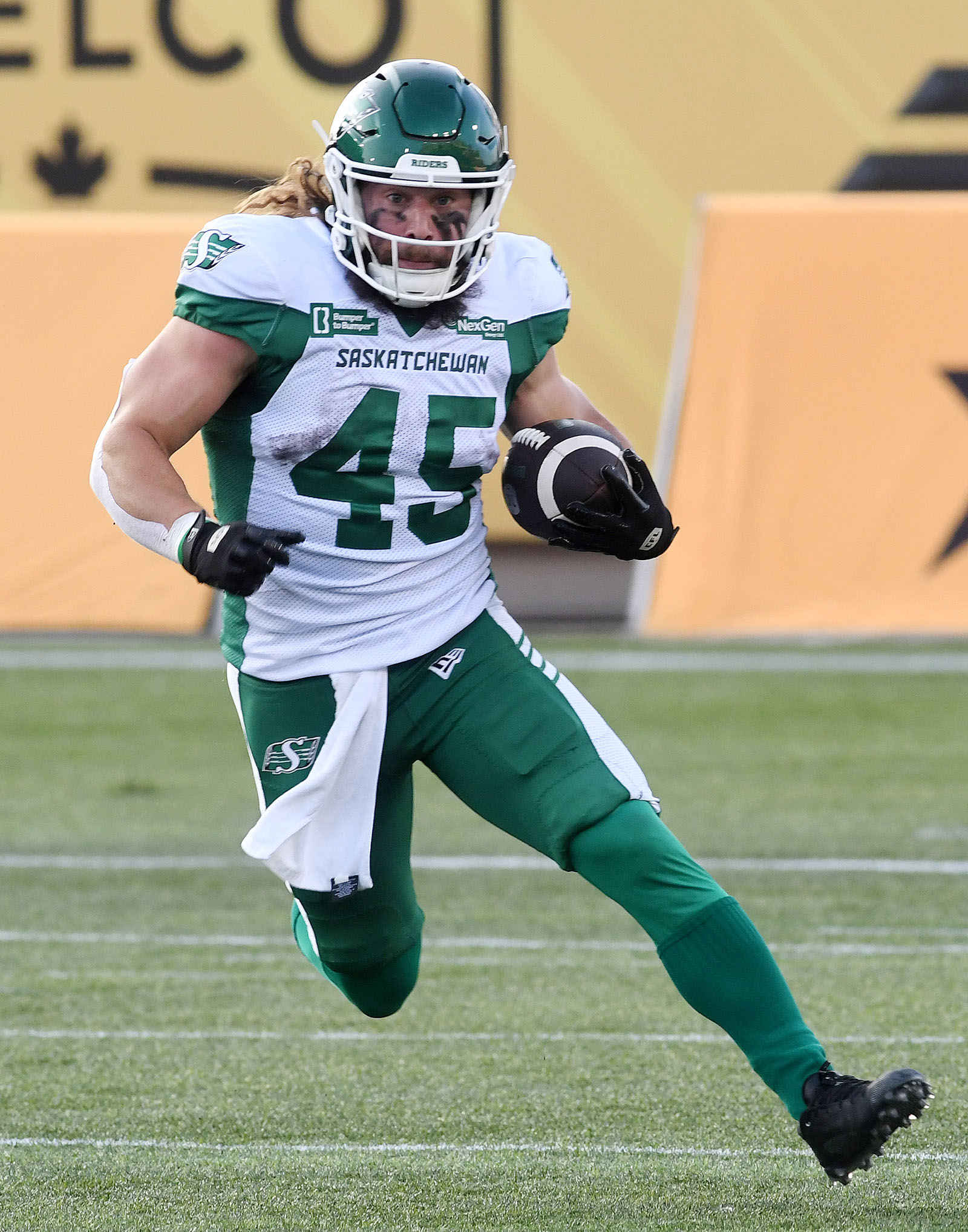 SASKATCHEWAN, CANADA – A.J. Ouellette, a 2014 graduate at Covington High School, is playing at a very high level in the CFL as he has helped lead the Saskatchewan Roughriders to a 4-0 record to start the season.