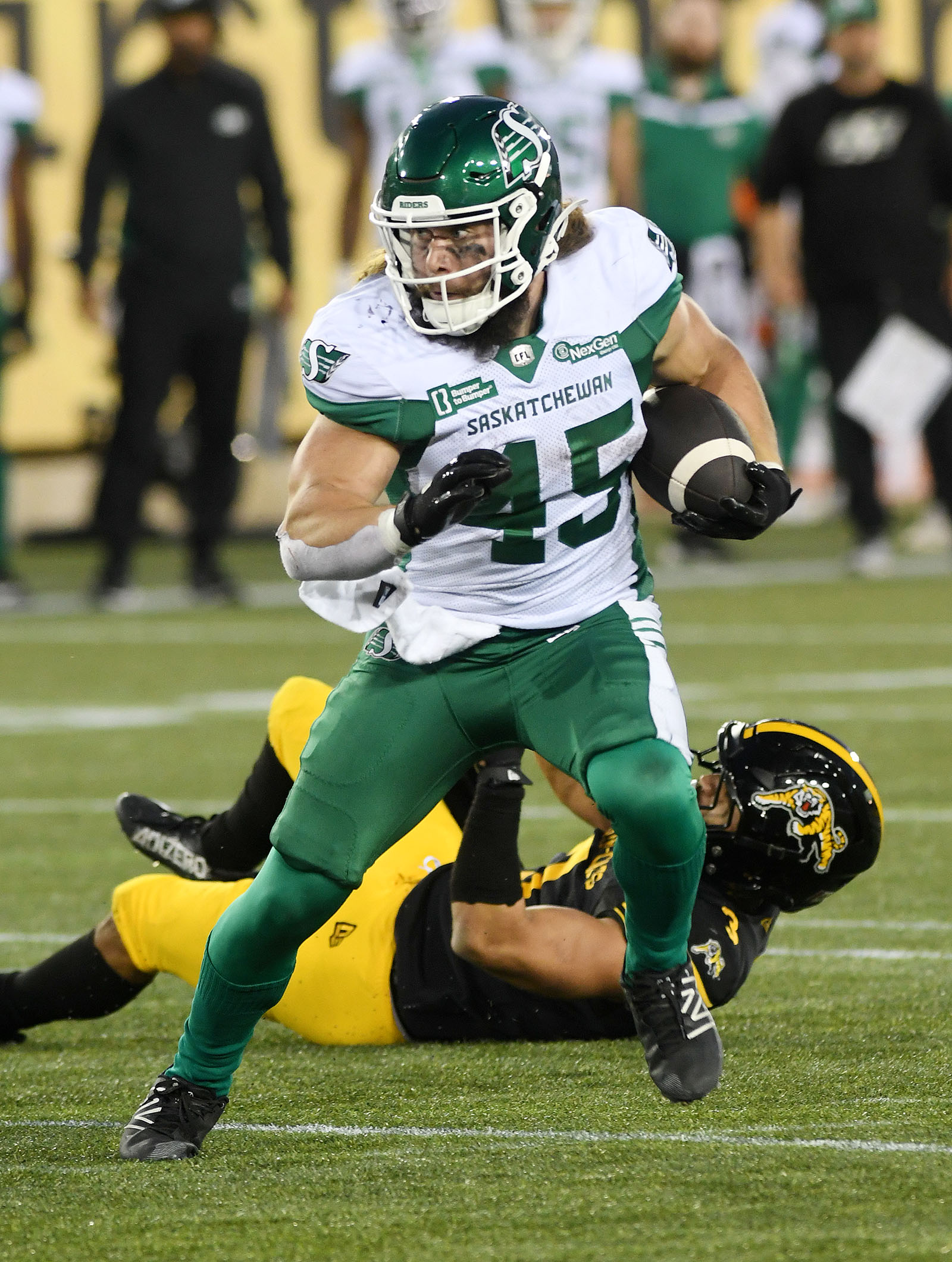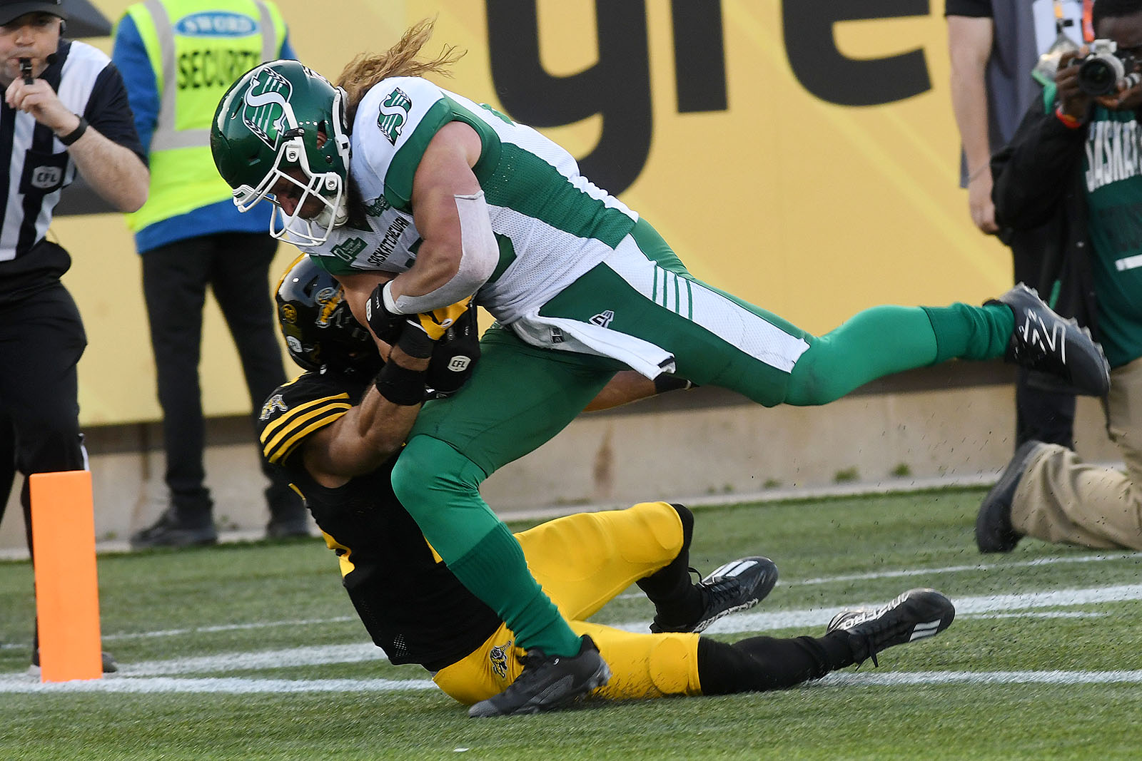 Ouellette changed the momentum by bursting through on a run up the gut and then breaking a tackle with a huge stiff arm on a 47-yard touchdown in the second quarter. Plus, throughout the entire game he ran extremely hard even though the Tiger-Cats focused on trying to shut him down.