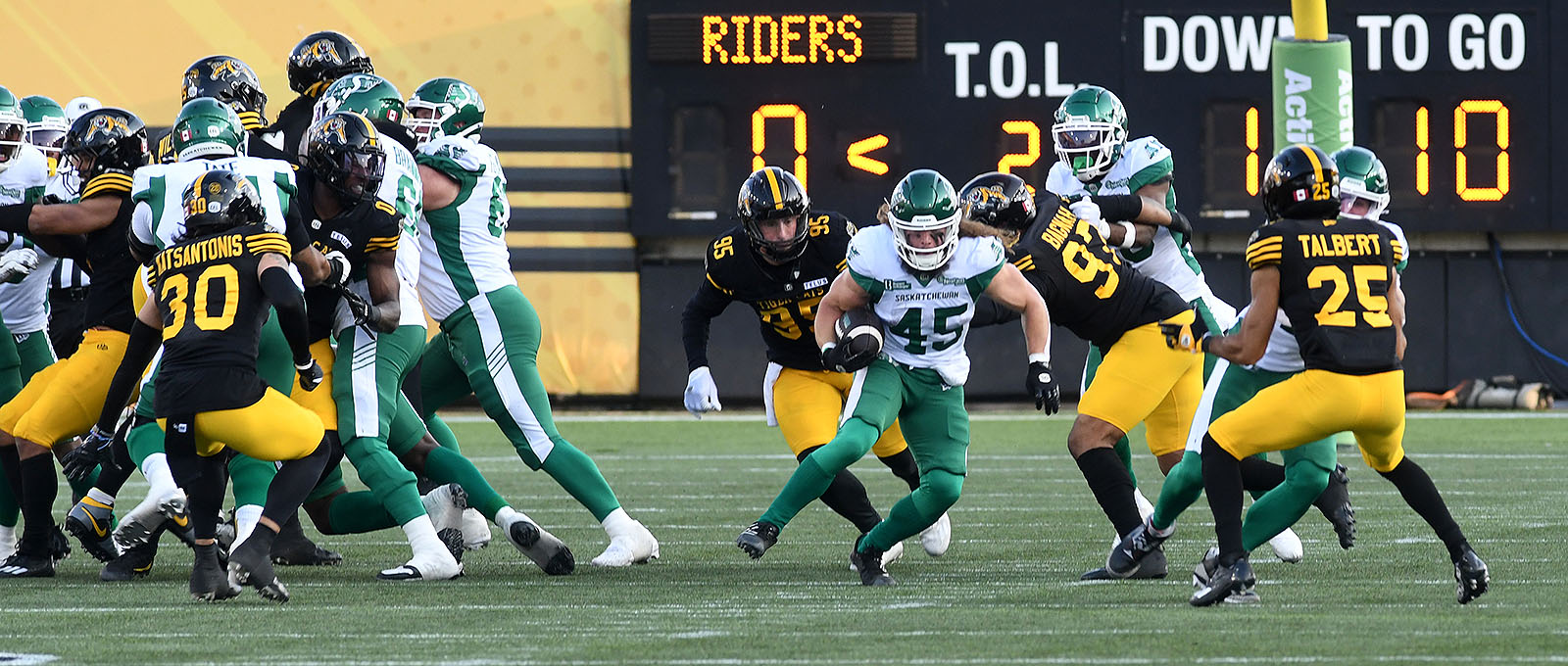 A.J. Ouellette has had a huge impact with the Roughriders due to his running back position. ©Ben Robinson/Color Green Photo